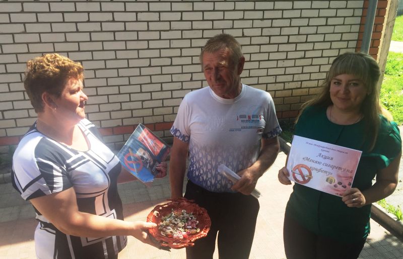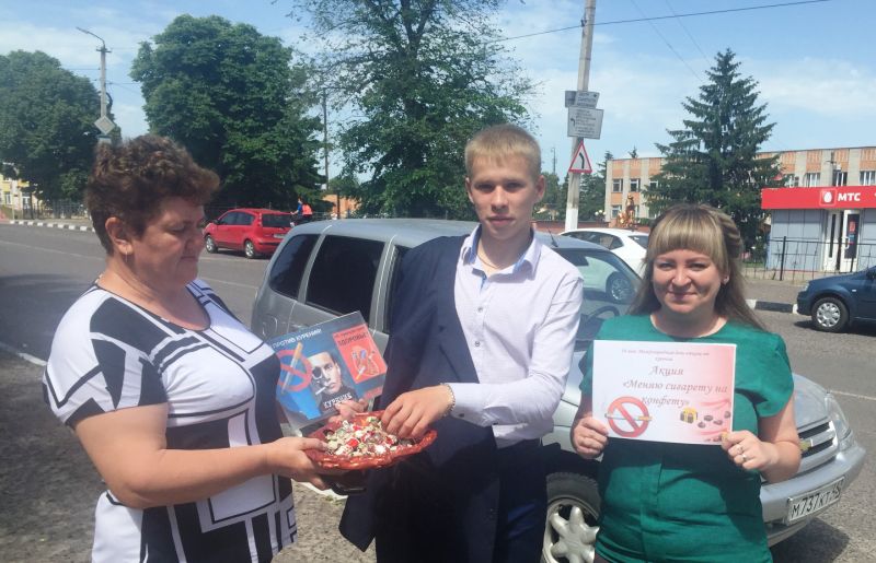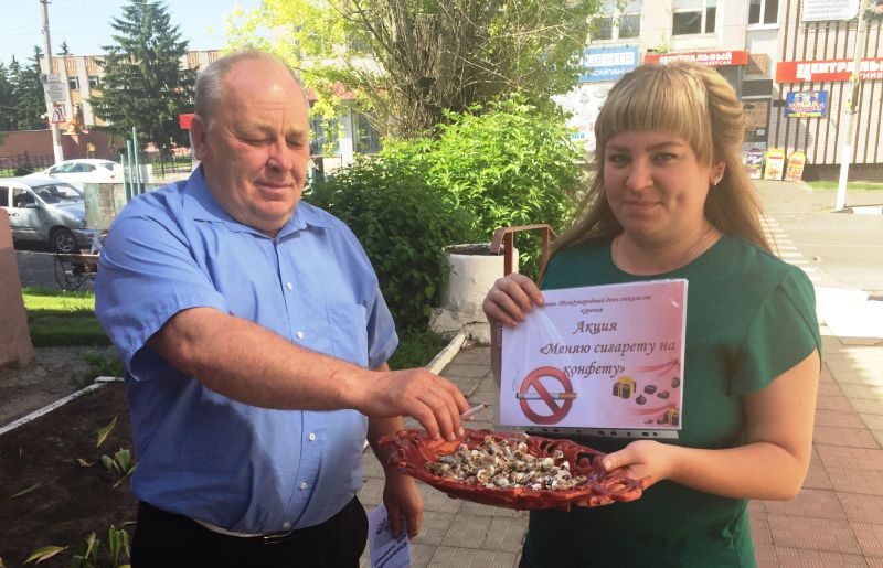 В Международный день отказа от курения, Межпоселенческая библиотека Медвенского района провела акцию, направленную на борьбу с табакокурением и пропаганду здорового образа жизни «Меняю сигарету на конфету».
