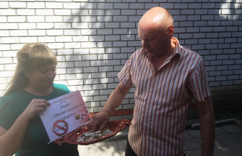 Перед участниками акции была поставлена цель - доказать, что от одной конфеты можно получить больше удовольствия, чем от одной выкуренной сигареты. Акция проходила оживлённо. Расположившись в центре посёлка, библиотекари предлагали обменять свои сигареты на конфеты. Реакция жителей нашего посёлка была разной: кто-то с улыбкой на лице менял свои сигареты на сладости, а некоторые не захотели принимать заботу о своем здоровье всерьез. Всех курильщиков призывали отказаться от сигарет хотя бы на один день и задуматься насколько это вредно. Безумное количество положительных эмоций вызывали те участники, которые говорили: «Никогда не курил, не курю и вам не советую». Участники акции получили буклеты «Спасибо, я не курю».