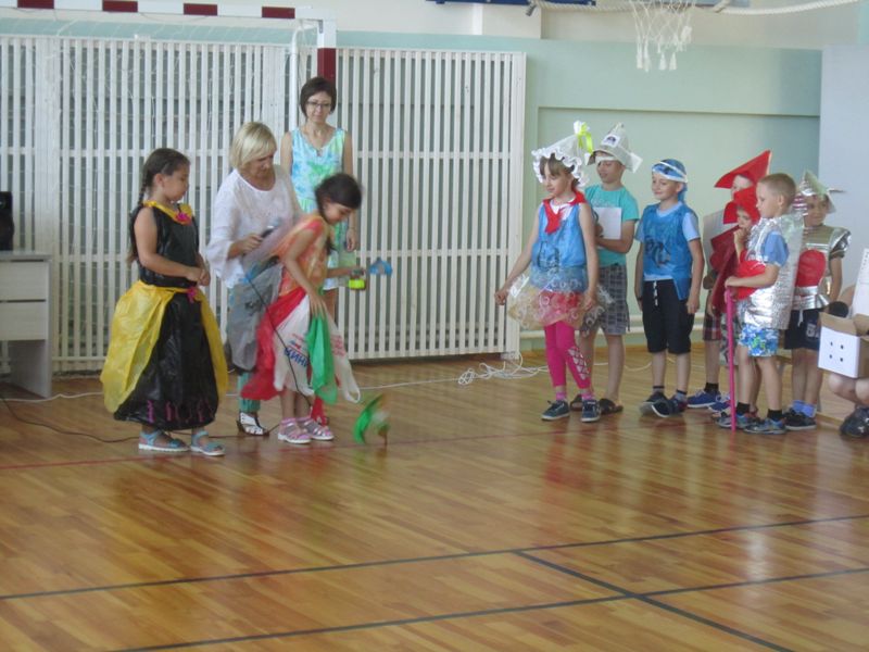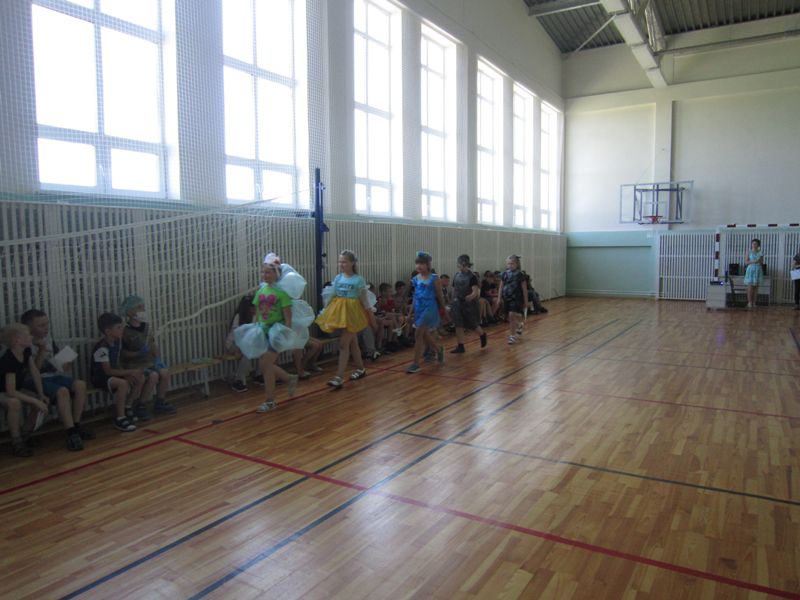 Каждый отряд представили костюмы из мусорных пакетов, бумаги, газет было очень оригинально и красочно. Отвечали на вопросы викторин о животных, растениях, о поведении в лесу, у пруда. Пели песни и рассказывали стихи о бережном отношении к природе.