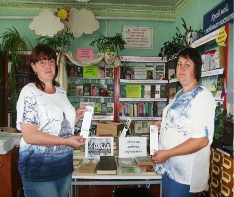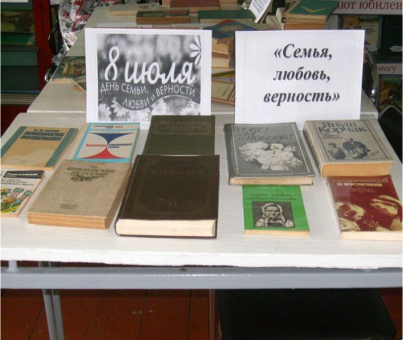 Для читателей в библиотеке к этому дню была оформлена книжная выставка «Семья, любовь, верность».