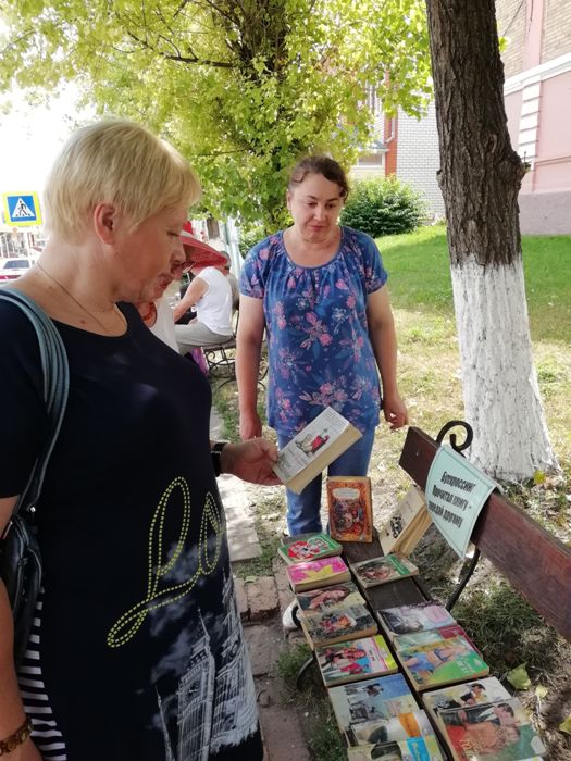 24 июля Межпоселенческая библиотека провела буккроссинг «Прочитал книгу – передай другому». Участниками мероприятия стали жители и гости п. Медвенка. Они с интересом узнавали о значении буккроссинга, как современной форме пропаганды книги и чтения, удивлялись, что можно взять понравившуюся книгу без записи. Особенно были востребованы детективы и любовные романы. Люди познакомились с возможностями буккроссинга и им понравилась такая форма общения с книгой.