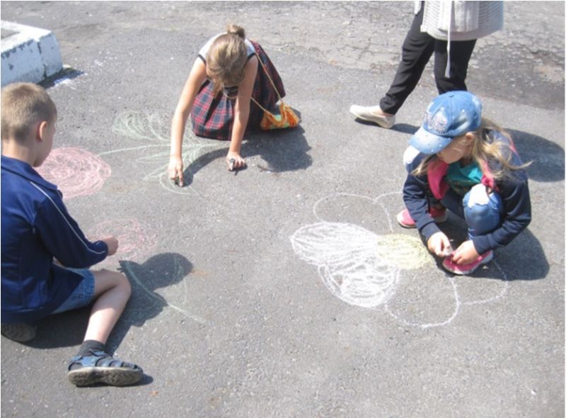 Закончили мероприятие на летней площадке, где ребята рисовали свои любимые цветы.
