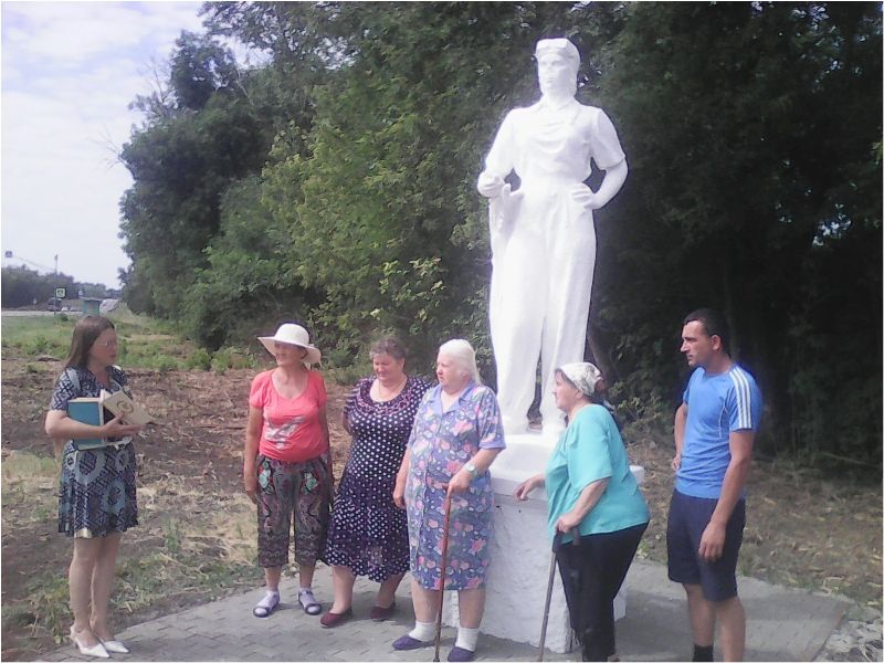 Провела мероприятие заведующая библиотекой А.В. Куровадля детей и взрослых. Мероприятие прошло около памятника на въезде в село. Данный памятник установлен в честь женщин – работников сельского хозяйства.
