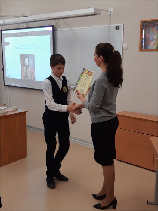 Школьники узнали интересные факты из жизни и творчества поэта, посмотрели документальный фильм о Михаиле Юрьевиче. Затем ребята поделились на две команды, названия которых были выбраны из творчества М. Лермонтова, и приняли участие в викторине. Учащиеся активно отвечали на вопросы и показали высокий результат уровня знаний о поэте.