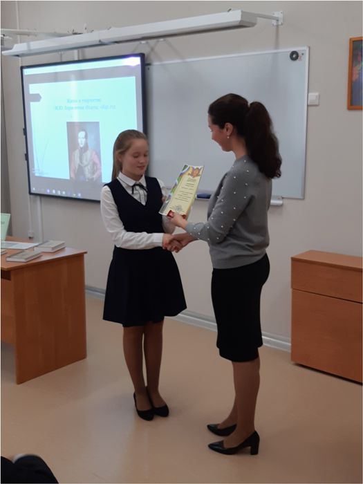 Учащиеся подготовили стихотворения М. Лермонтова и поучаствовали в конкурсе чтецов «Недаром помнит вся Россия..», за что были награждены дипломами в номинациях – за 1,2,3 места и за участие, а так же получили сладкие призы.