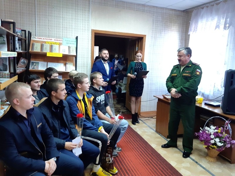 18 октября 2019 года в МКУК «Межпоселенческая библиотека» посёлка Медвенка в 10.00 часов состоялся один из значимых праздников в нашем районе. Два раза в год у нас в поселке традиционно, в торжественной обстановке проводится осенний и весенний призыв в армию.
