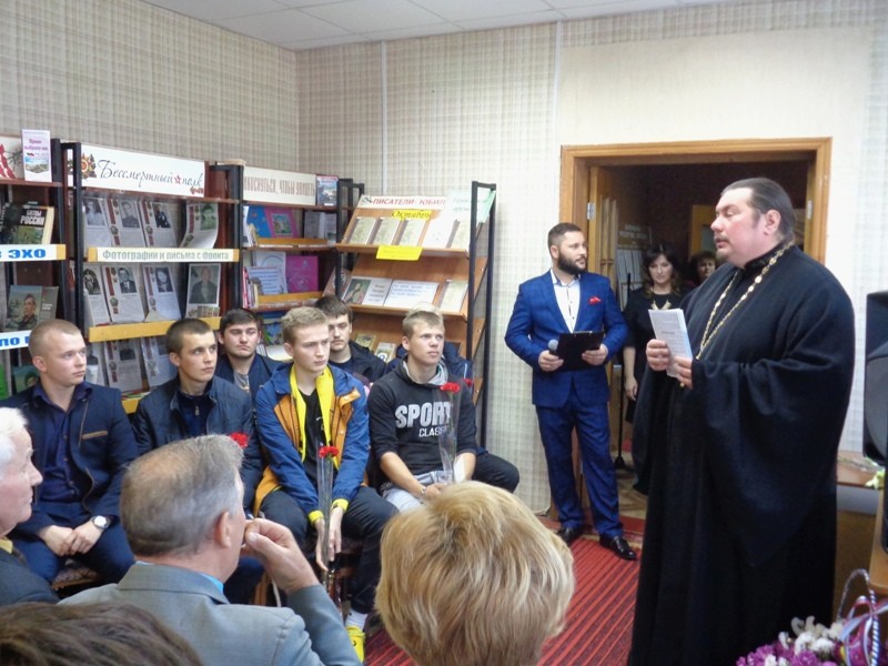 На защиту Отечества всегда благословляла святая церковь. С молитвой выступил Клирик Успенского храма поселка Медвенка иерей Дмитрий Долженков. Со словами напутствия к завтрашним солдатам обратился Председатель Совета ветеранов посёлка Медвенка Н.В. Переверзев.