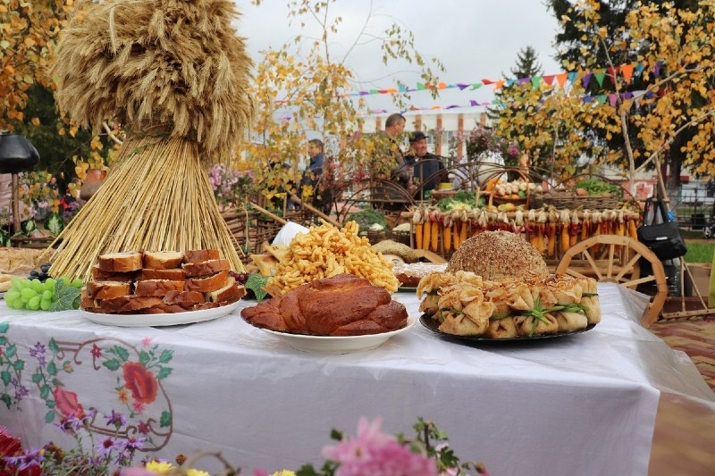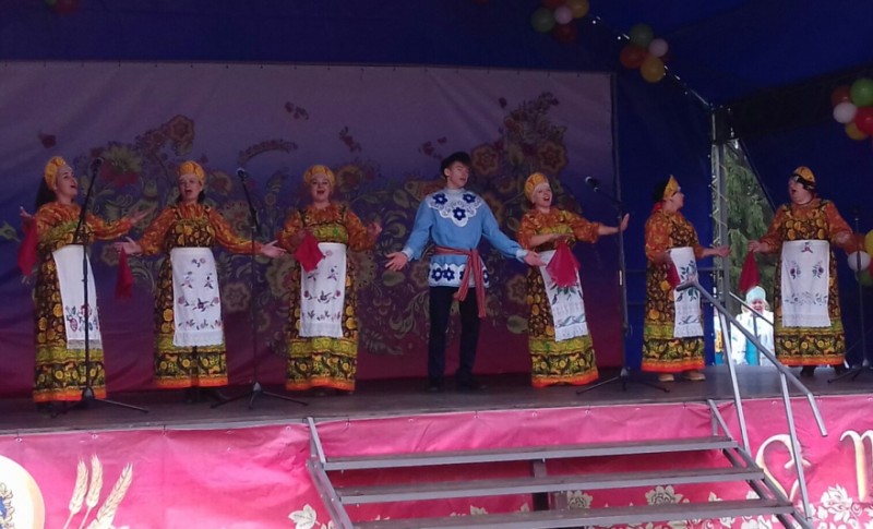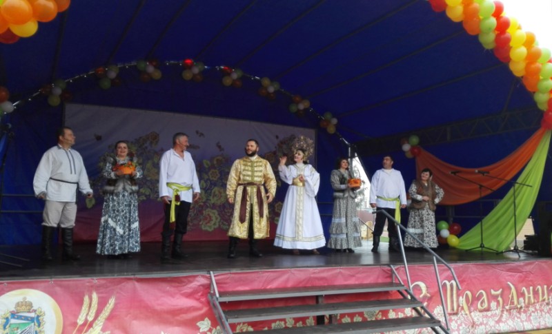 А какие живописные и хлебосольные подворья расположились в нынешнем году на площади! Ни одно подворье муниципальных образований не походило друг на друга, у каждого было свое неповторимое «лицо». Сельские работники учреждений культуры подготовили на подворьях увеселительную программу, угощали хлебом-солью, пели песни, весёлыми частушками зазывали гостей на свои красочные подворья. Своеобразной изюминкой праздника стала необычная экспозиция – двухъярусный стол, на котором были выставлены потрясающие украшенные караваи от каждого муниципального образования.