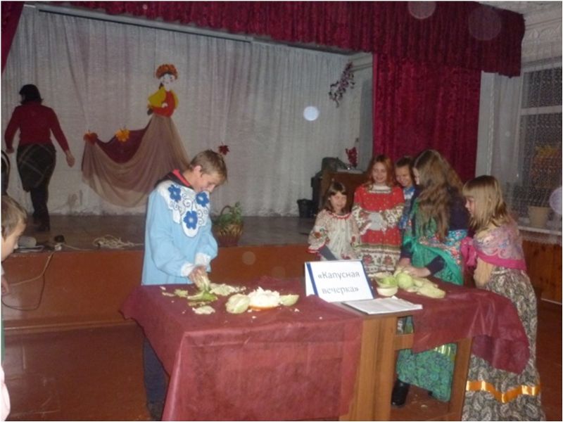 Осенние вечерки также посвящали овощам, например, капусте. Они были удобной, естественной формой общения людей во время досуга. Долгими осенне-зимними вечерами, когда полевые работы закончены, собравшись в избе или во дворе крестьяне позволяли себе расслабиться и отдохнуть, пели, играли, водили хороводы.