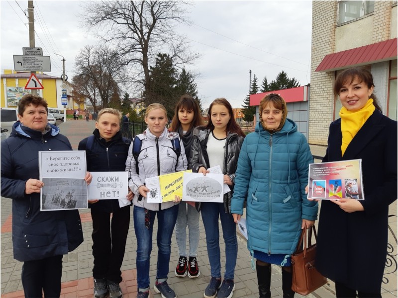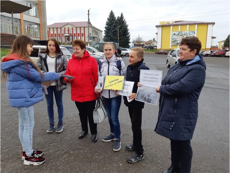 Сотрудники МКУК «Межпоселенческой библиотеки Медвенского района» совместно с представителями молодежи - учащимися Обоянского филиала аграрного техникума провели акцию «Молодежь против наркотиков».