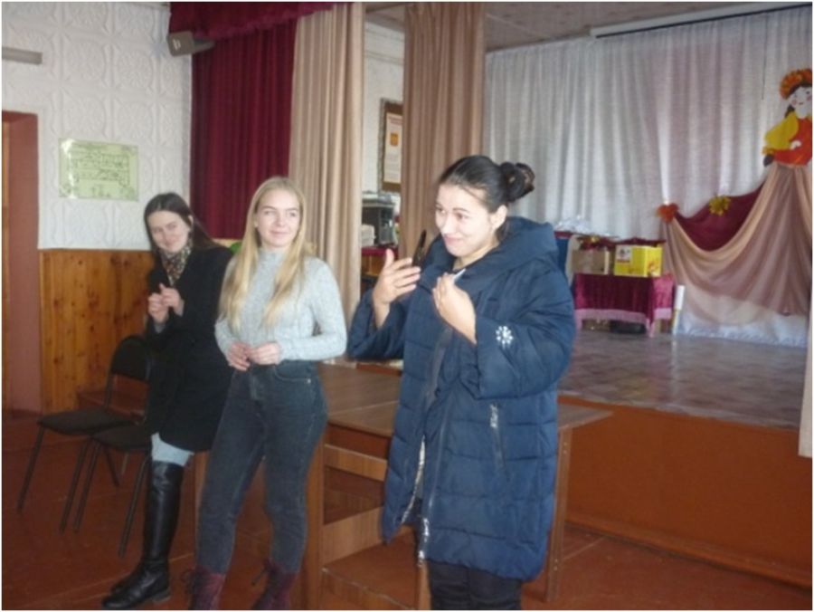 В мероприятии приняли участие мамы со своими детьми: Лунева Дарья Николаевна с дочерью Дашей, Зубарик Анна Александровна с дочерью Катей, старшая сестра Анастасия с сестрой Аней и Вика со своим братом Юрой. Ведущая поздравила всех с праздником и прочитала для них стихотворенье и басню о маме и провела с мамами и детьми эстафеты, такие как: «Пантомимо», «Завтрак», «Узнай своего ребенка по голосу», «Вспомни песни о цветах », «Потанцуй».