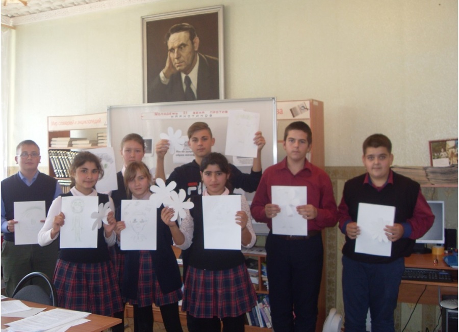 Заведующая библиотекой познакомила ребят с пагубным воздействием на организм человека наркотических средств. Ведущая предложила учащимся нарисовать портрет наркомана и дать ему характеристику. Участники мероприятия участвовали в диспуте «Наркотики: мифы и реальность».