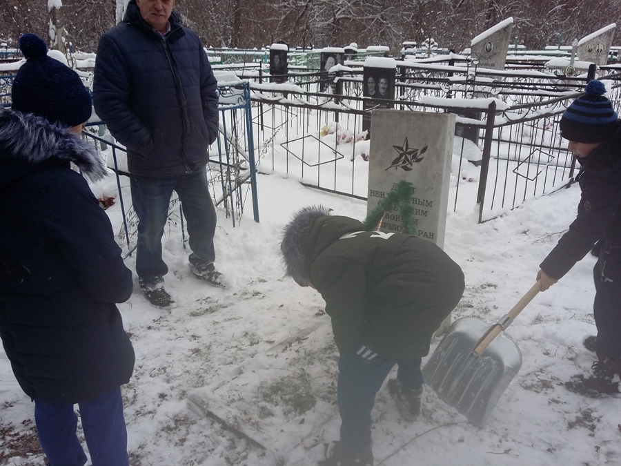 Танков Ю. Н. рассказал историю о 2-х неизвестных солдатах, которые во время ВОВ зимой, попросились погреться, но к сожалению до утра они не дожили. Схоронили их в одной могиле. Эта история затронула сердца ребят. Юрий Николаевич ответил на многие интересующие их вопросы.