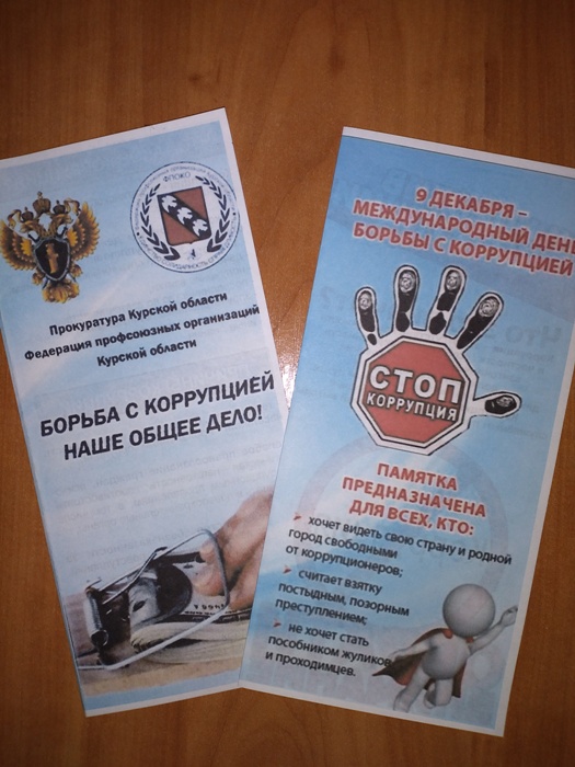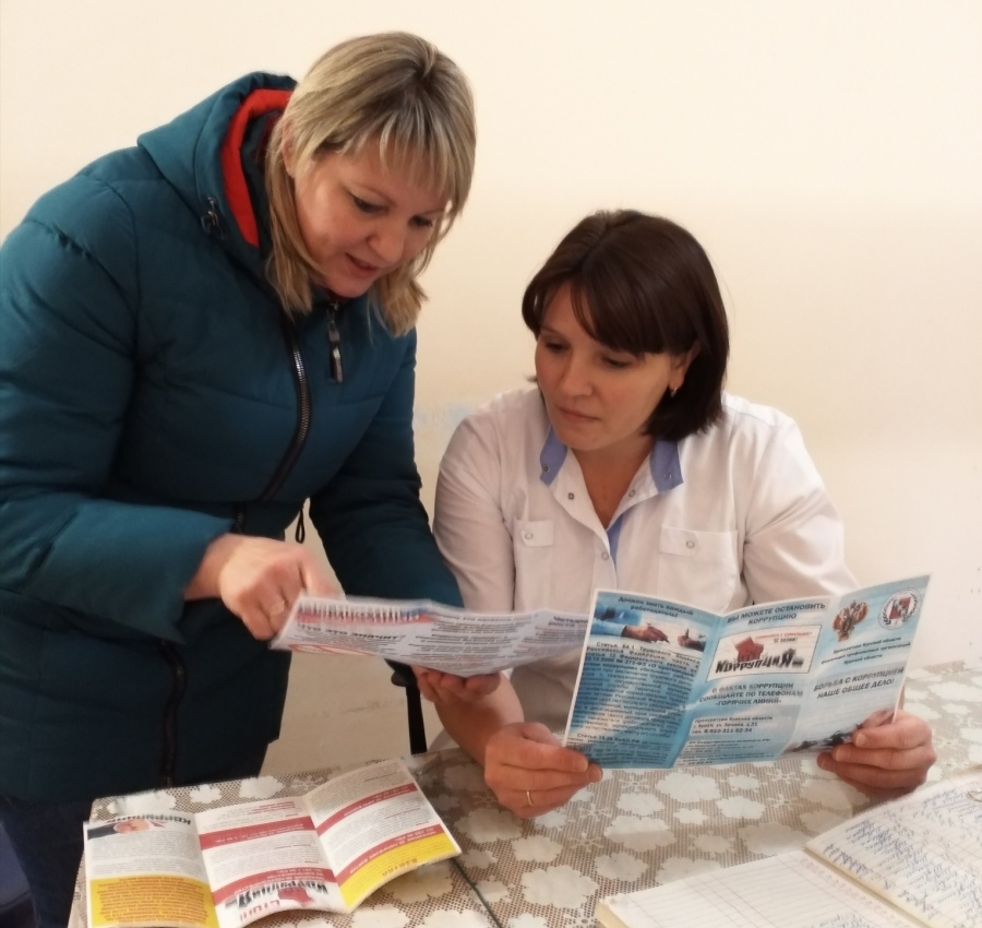 Были распространены памятки по противодействию коррупции в организациях и учреждениях, а также среди населения нашего района. В памятках дана краткая информация об уголовной ответственности за нарушение Закона «О противодействии коррупции», а также телефоны «Горячей линии», по которым можно сообщить о фактах коррупции.