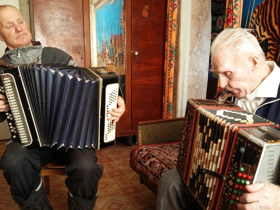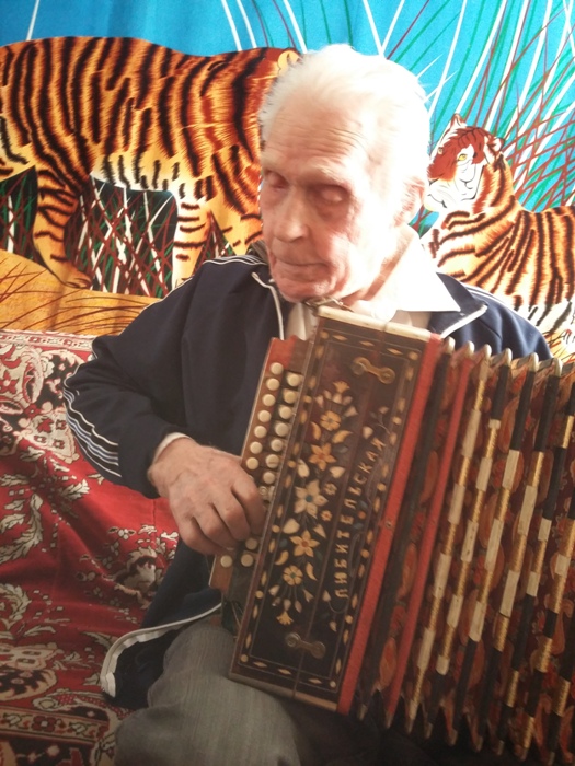 Работники культуры совместно с фольклорным анс. «Истоки» подготовили концертную программу. Николай Михайлович в молодости играл на гармошке и балалайке. С каким трепетом он перебирал струны на балалайке и кнопки на гармошке, что невольно накатывали слезы на глаза. Было спето много песен, воспоминания о своей молодости заставили улыбаться нашего дорогого Николай Михайловича, а ему в этом году исполнилось 90 лет.