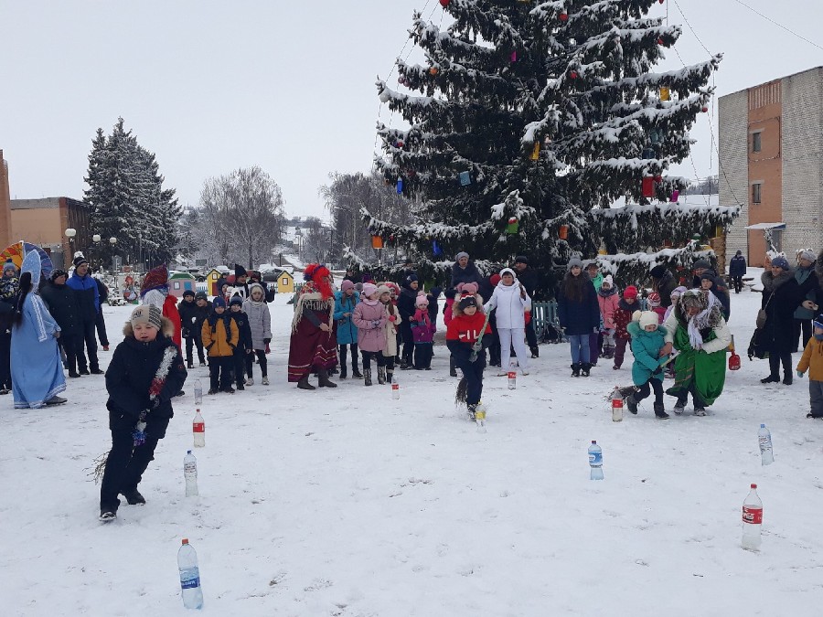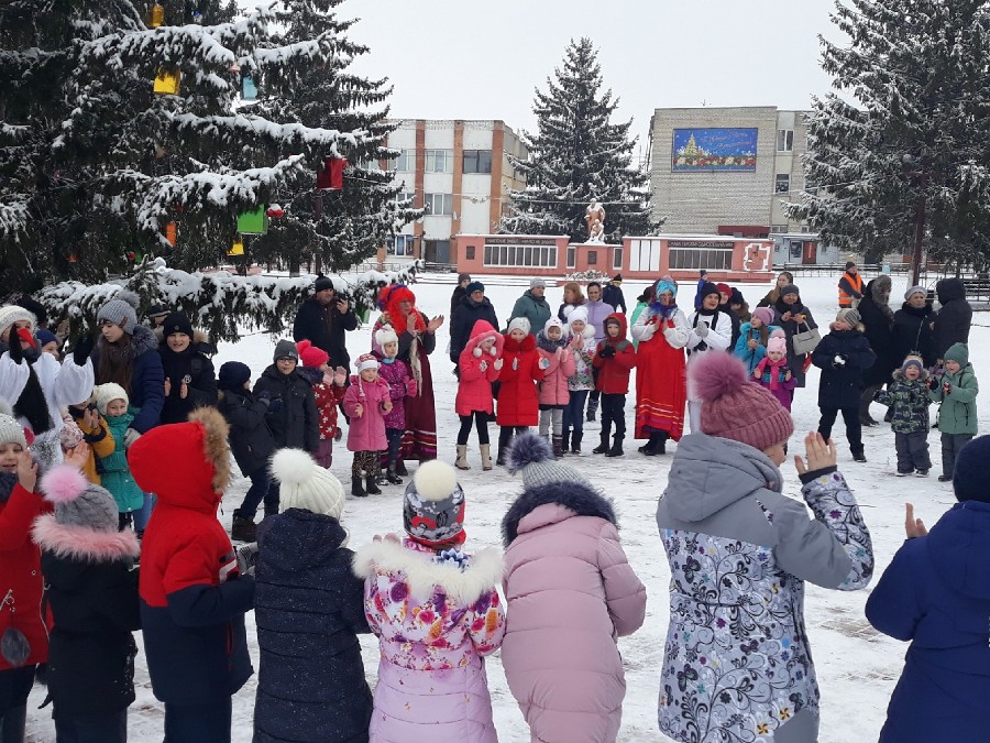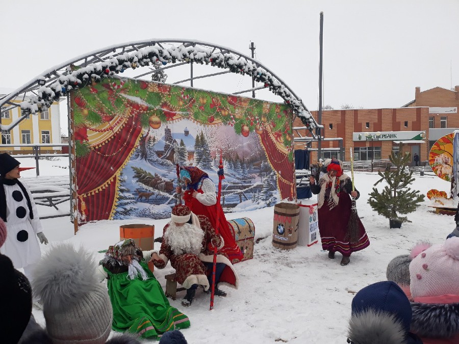 На Центральной площади нашего поселка прошло Новогоднее представление «Приключения Бабы Яги».