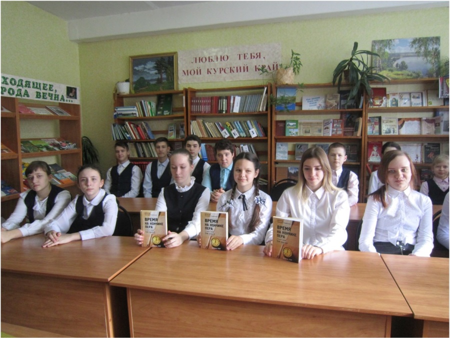 Рождение новой книги – необыкновенно радостное, большое событие. Она идет в мир к читателям. Книга может нести свет. Она может обогатить человека новыми знаниями. У каждой книги – свое лицо, характер, свой голос, своя судьба. Это хорошо поняли ученики Медвенской школы, когда директор библиотеки Л. А. Краснопивцева предложила им познакомиться с выставкой писателей-земляков. Особое внимание Любовь Алексеевна уделила творчеству Е. И. Носова, чей юбилей куряне отмечают в этом году.