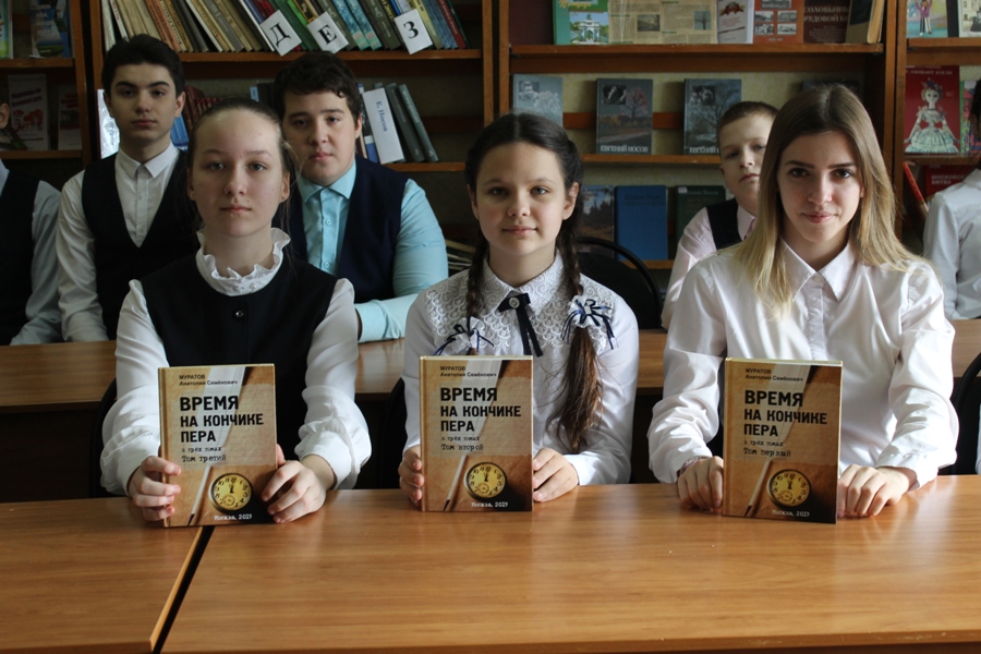 Не меньший интерес у юных гостей праздника вызвала только что подаренная району книга участника Великой Отечественной войны А. С. Муратова «Время на кончике пера». Надо было видеть, как посерьезнели у детей лица, когда полистали они страницы трехтомника, казалось, впитавшие в себя порох, дым огненных славных лет.