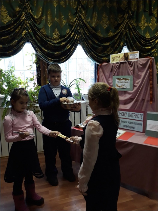 В память о жертвах блокады Ленинграда, в память о тех, кто сражался и погиб в блокадном городе, волонтеры раздали по кусочку хлеба – 125 грамм. Данное мероприятие произвело глубокое впечатление на всех присутствующих.