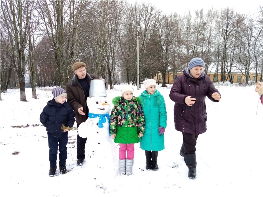 Дети не заставили себя ждать, пришли вместе с учителем физкультуры, решили вылепить снеговика и поиграть в снежки. Им в это помогали работники Дома культуры и сельской библиотеки.