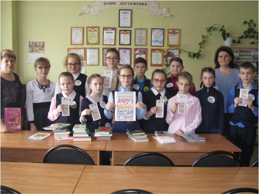 Учащимися 5А класса МБОУ «Медвенская СОШ имени Героя Советскго Союза Г. М. Певнева» и жителями поселка Медвенка библиотеке было подарено 30 книг. Для школьников была проведена литературная игровая программа. Всем участникам акции были розданы буклеты «Дарите книги с любовью».