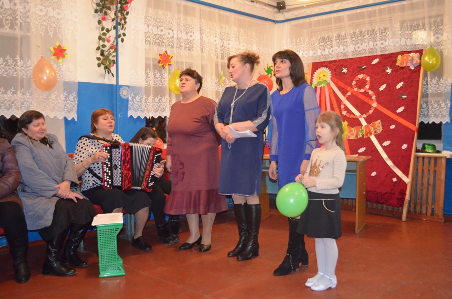 Для собравшихся в зале гостей работники культуры пели песни, читали стихи и праздничные поздравления, играли сценки, проводили конкурсы. Также находившихся зале женщин поздравляли дети и мужчины.