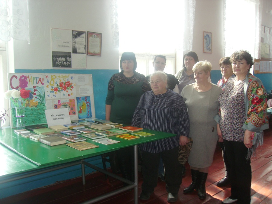 К празднику была оформлена выставка-поздравление «Мы славим женщину». На ней представлены книги, посвященные великому чувству любви к женщине и репродукции картин великих художников.