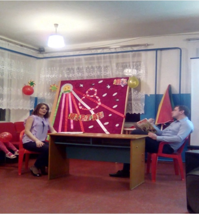 Ведущие рассказали историю возникновения праздника. Для прекрасных дам прозвучали песни и стихи, пожелания. Мероприятие завершилось чаепитием.