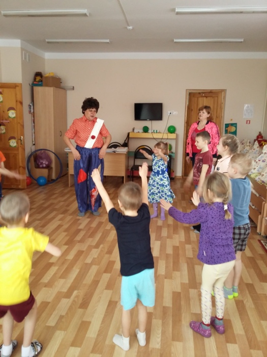 Карлсон, прилетел к ребятам в гости на праздник. Детки научили его делать зарядку, бегать, прыгать по кочкам, ходить в турпоход, преодолевать всевозможные трудности. В знак благодарности он раздал всем конфеты.