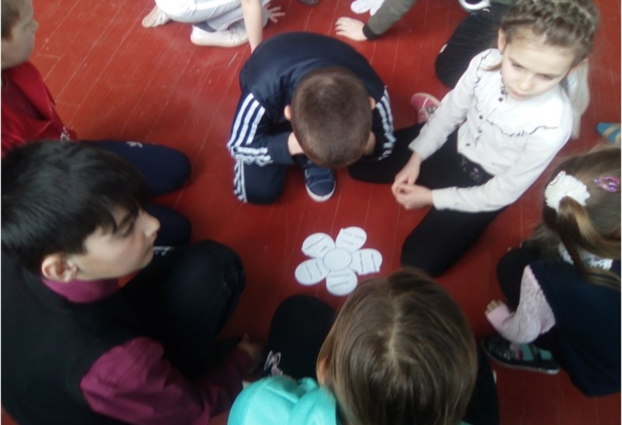 В процессе игры ребята участвовали в эстафетах: «Поезд», «Попади в цель» «Сороконожка». Вспоминали пословицы, которые вклеили в ромашку, отгадывали загадки о спорте.