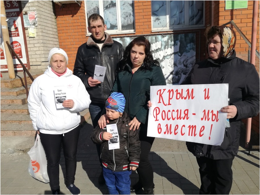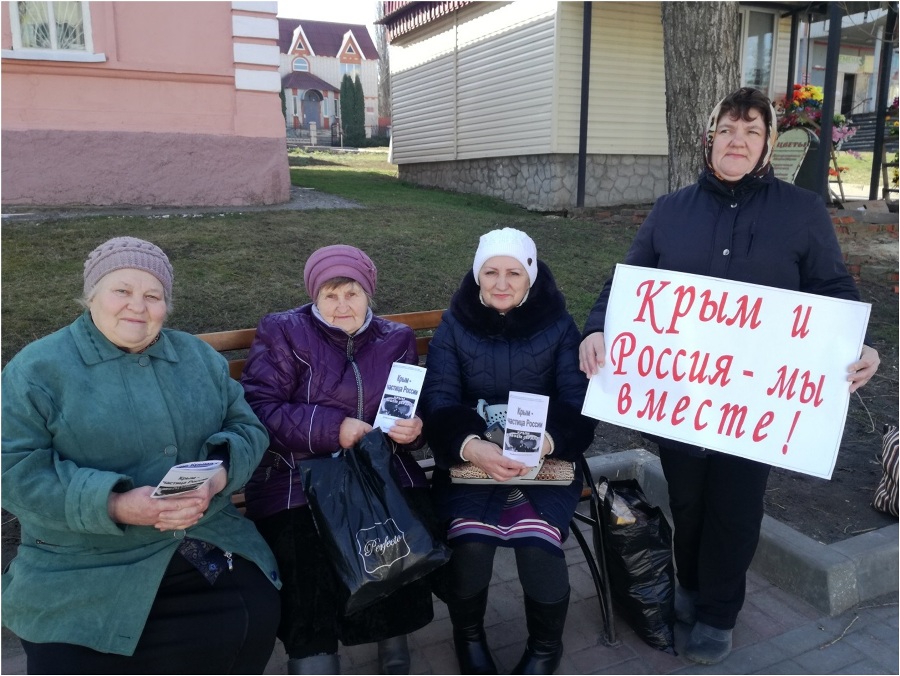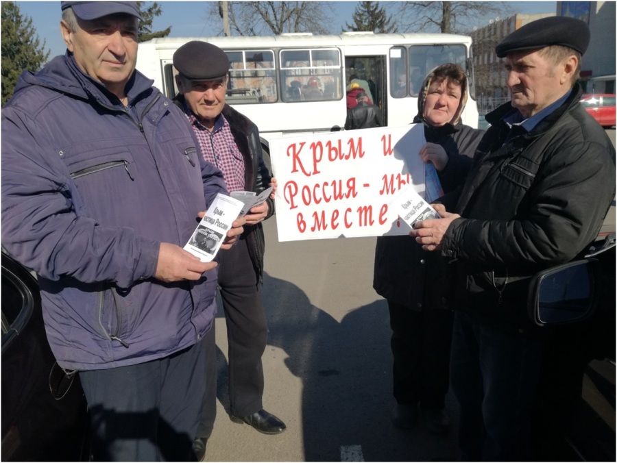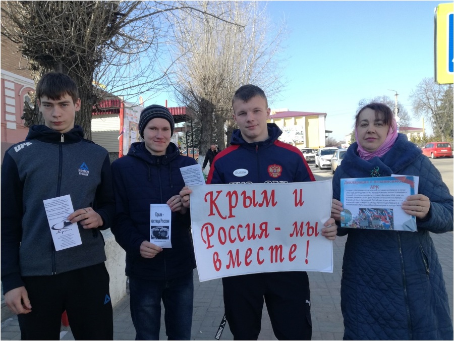 В связи с этим на улице Певнева была организована акция "Россия и Крым: мы вместе". В ходе акции работники МКУК «Межпоселенческая библиотека Медвенского района» рассказывали об истории возникновения этого праздника, беседовали с людьми, раздавали буклеты, в которых подробно описывались крымские события.