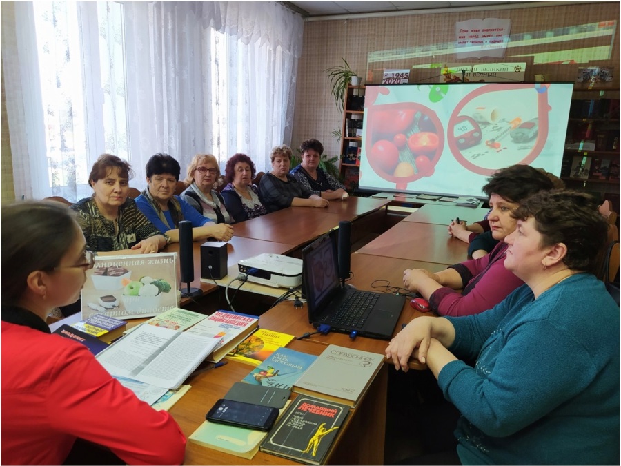 Сотрудники библиотеки подготовили интересную книжную выставку «Полноценная жизнь при сахарном диабете» и провели обзор книг на заданную тему. Показали видеоролик «Правильное питание при сахарном диабете».