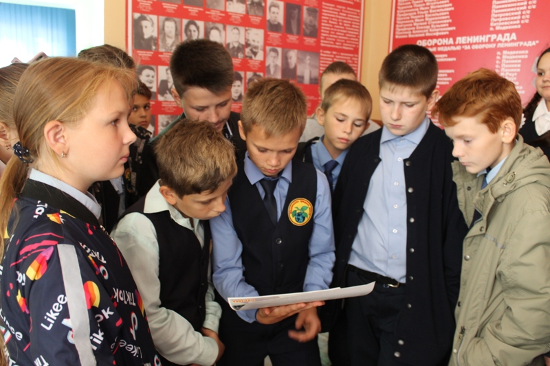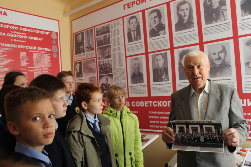 Заведующая музеем провела экскурсию. Дети с интересом рассматривали фотографии Героя Советского Союза, газетные статьи о нём, предметы времён Великой Отечественной войны. О подвигах М. А. Булатова они слушали с напряжённым вниманием, говорящим о том, что души их глубоко трогает героизм прадедов.