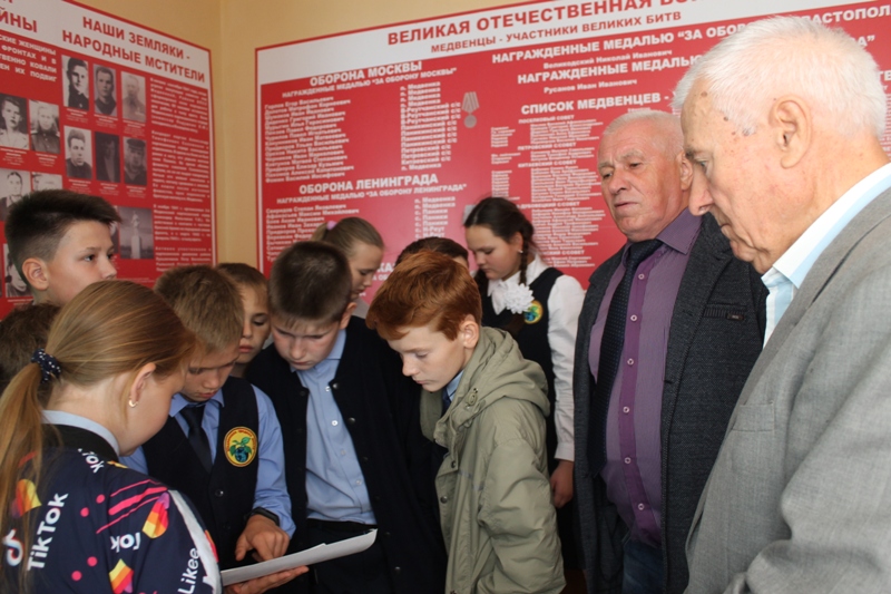 22 сентября в музее имени Д. Я. Самоквасова состоялось открытие выставки «Славный путь Героя Булатова». На мероприятии присутствовали ученики 5 «Б» класса Медвенской СОШ.