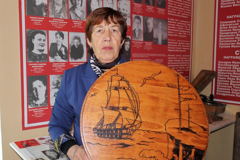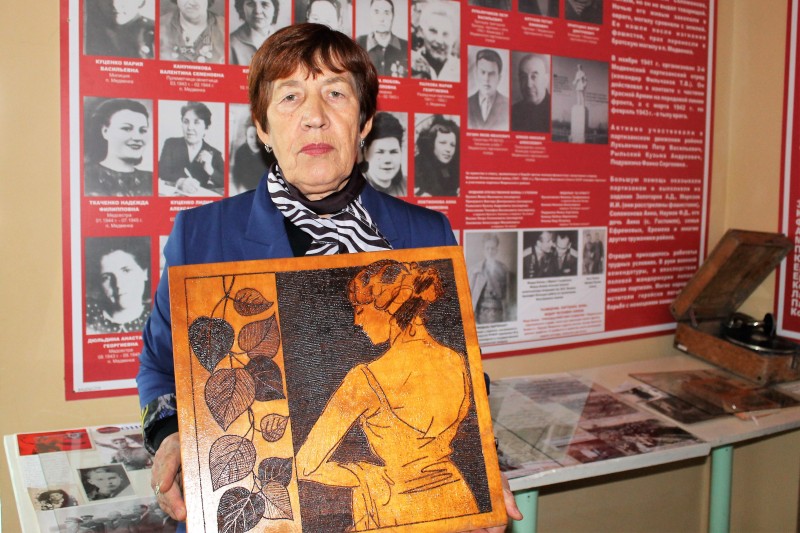 «Действительно, музы не молчали на войне», – продолжила тему заведующая домом-музеем Е. М. Чепцова Л. А. Атнюкова. На картинах, показанных ею зрителям, трагические и героические моменты «сороковых, роковых». Лидия Алексеевна и сама человек творческий. Её художественные работы проникнуты любовью к отчей земле, к человеку.
