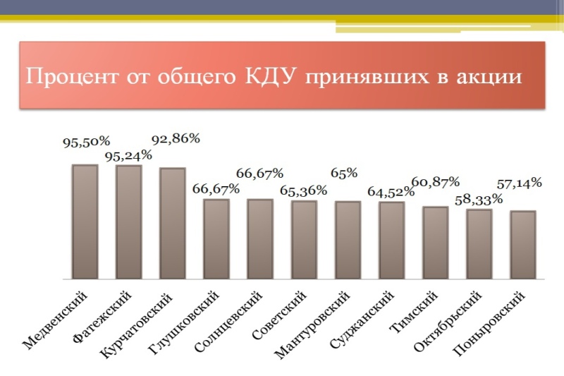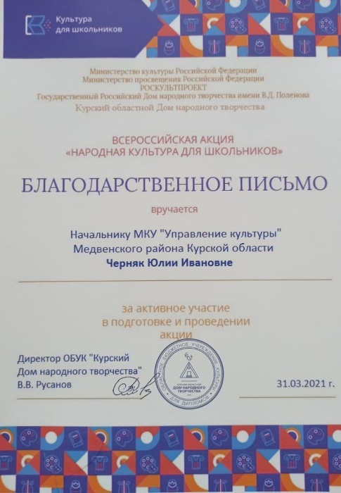 Результатом активной, плодотворной работы специалистов учреждений культуры района стало лидирующее место среди культурно-досуговых учреждений Курской области!