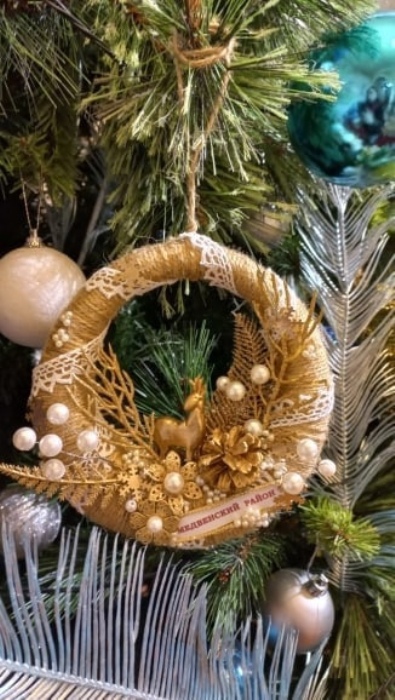 Новогодняя ёлочка украшена игрушками, изготовленными мастерами и мастерицами из каждого района области.