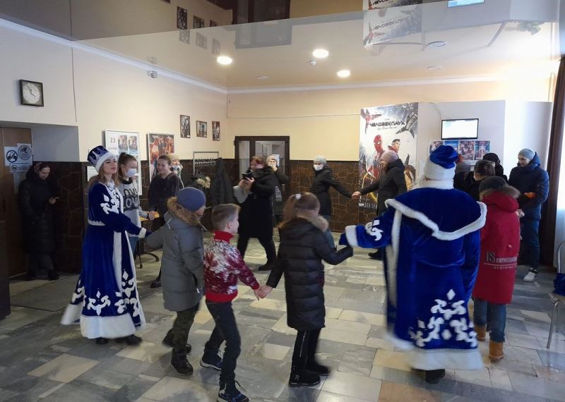 Вот и сегодня в кинотеатре "Юбилейный" Дед Мороз и Снегурочка закружили, взявшись за руки, детишек и их родителей!