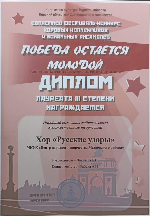 А хор "Русские узоры" Центра народного творчества и вокальный ансамбль "Колосок" Спасского сельского Дома культуры стали Лауреатами III степени.