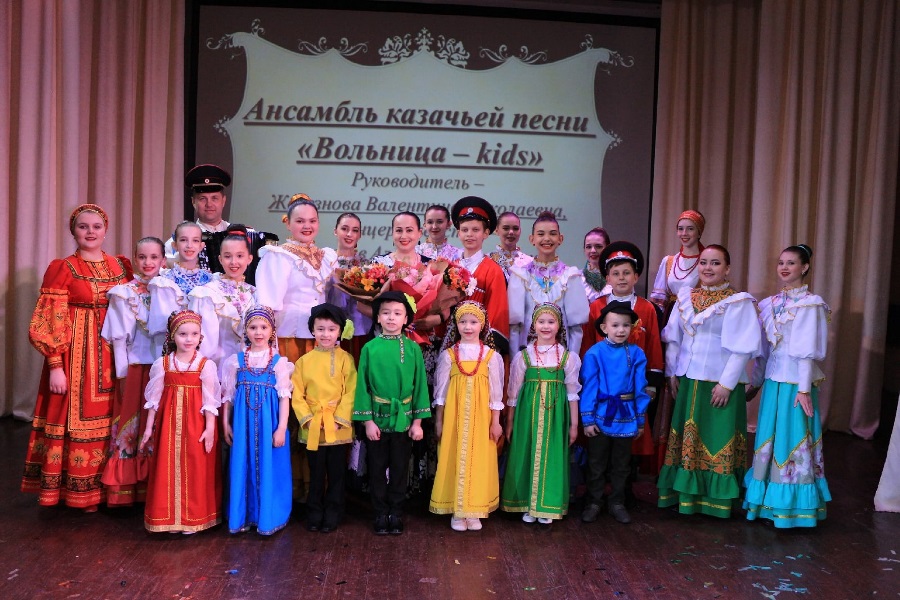 На сцене Центра народного творчества состоялся отчетный концерт ансамбля казачьей песни "Вольница-kids", в рамках которого состоялось прослушивание по присвоению ему звания "Образцовый коллектив любительского художественного творчества".