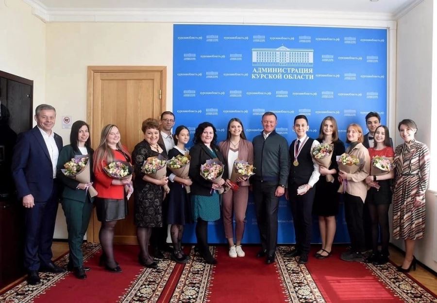 Наша юная коллега Алина Железнова на встрече лауреатов XXI молодежных Дельфийских игр России с Губернатором Курской области Романом Владимировичем Старовойтом.