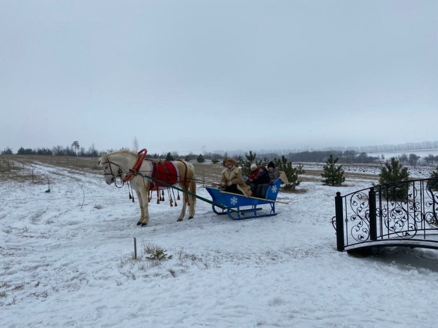 В Рождество в этнографическую деревню «Хутор Песочное» заглянули Дедушка Мороз и Снегурочка.