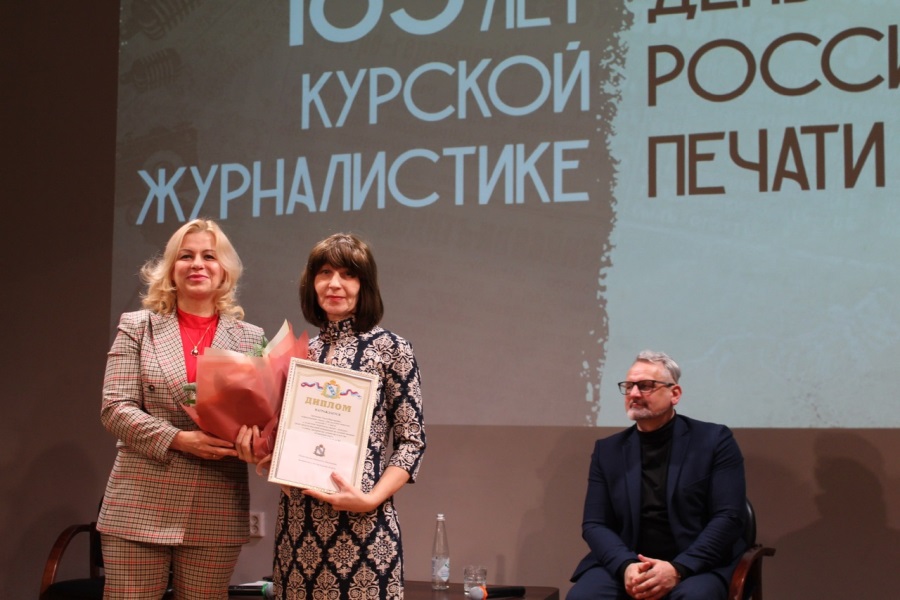 В концертном зале «Свиридовский» на празднике, посвящённом Дню российской печати, члену Союза писателей России Ольге Артёмовой вручили диплом и подарок.