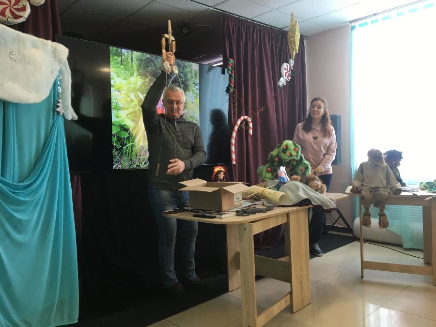 На Малой сцене Курского государственного театра кукол ведущий мастер сцены театра, режиссер-постановщик Игорь Семяновский, художник-бутафор Ольга Кельина и художник-конструктор Олег Кельин провели мастер-класс для руководителей районных детских театров кукол Курской области.