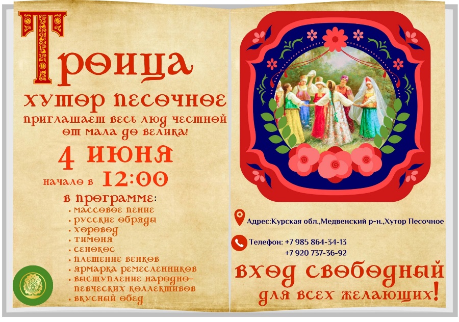 4 ИЮНЯ с 12 часов в этнографической деревне «Хутор Песочное» пройдет праздник Троица!