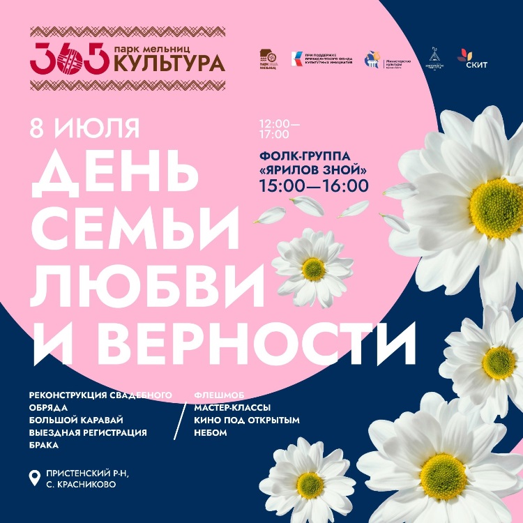 День семьи, любви и верности пройдет 8 июля с 12:00 до 17:00. Регистрация по ссылке: clck.ru/34qKVR. Мы реализуем межрегиональный проект на базе этнокультурного центра «Парк мельниц - культура 365» при поддержке Президентского фонда культурных инициатив.