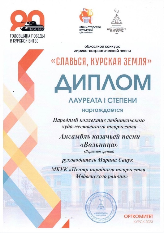 Конкурс с таким патриотическим названием принёс Победу народному ансамблю казачьей песни "Вольница" и его солистам!