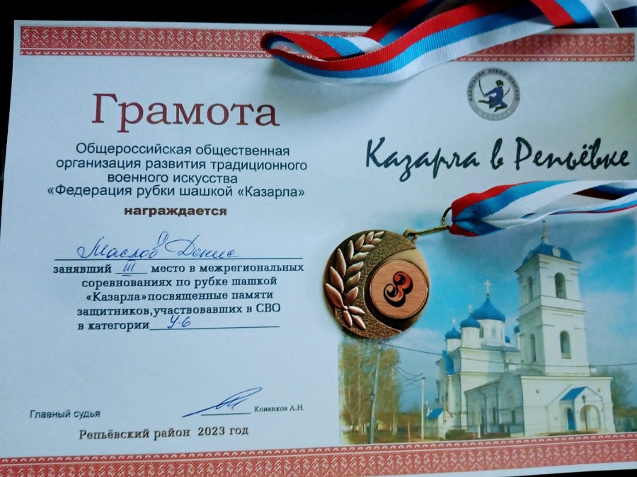 Маслов Денис стал призёром Межрегиональных соревнований по рубке шашкой "Казарла"!