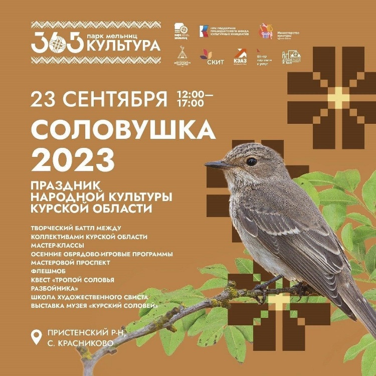 Не знаете, как провести субботу? Отправляйтесь на праздник народной культуры Курской области «Соловушка», который состоится 23 сентября в «Парке мельниц» (с. Красниково, Пристенский район).