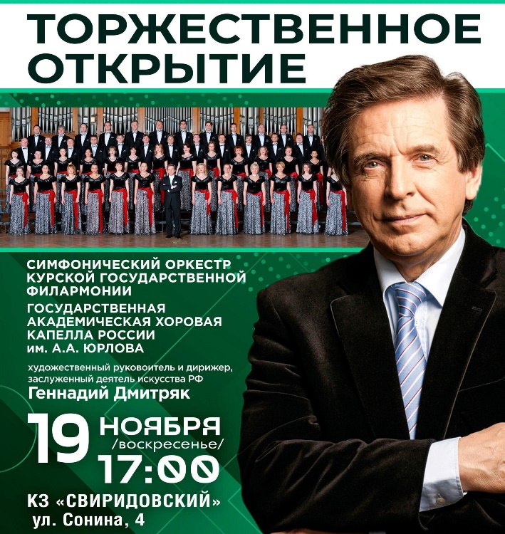 На открытии выступят артисты Государственной академической хоровой капеллы России имени Юрлова под руководством заслуженного деятеля искусств России Геннадия Дмитряка и симфонический оркестр Курской филармонии под управлением Игоря Сукачева.